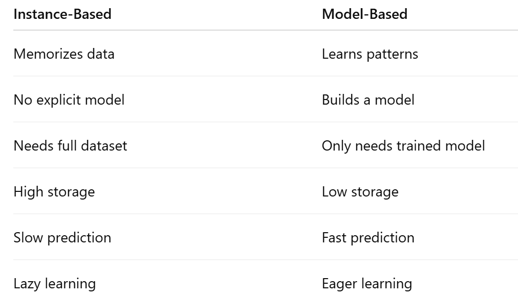 👉 Instance-based is often called Lazy Learning.